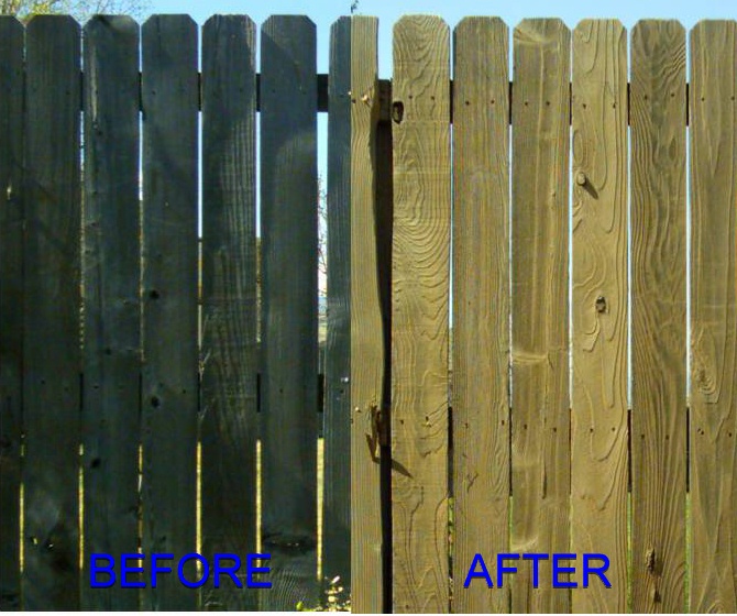 A couple helpful hints: First, buy or rent a pressure washer that will create over 2000 PSI. It’ll make the cleaning go much more quickly. Second, wet the fence section ahead of the one you’re working on to allow the water to loosen the dirt and decay. Finally, take your time and focus on each board with your spray. Spray with the grain; and use a fan spray – avoid the high-pressure jets.