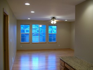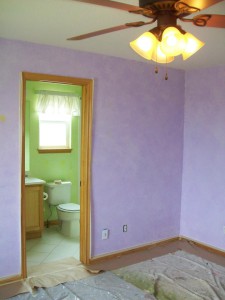 The owners bought this home specifically for an executive rental, but weren’t enamored with the purple bedroon, lime-green bathroom, the half-painted master suite or the faux-painted dining room and accents so they called the HappyPainters to the rescue.