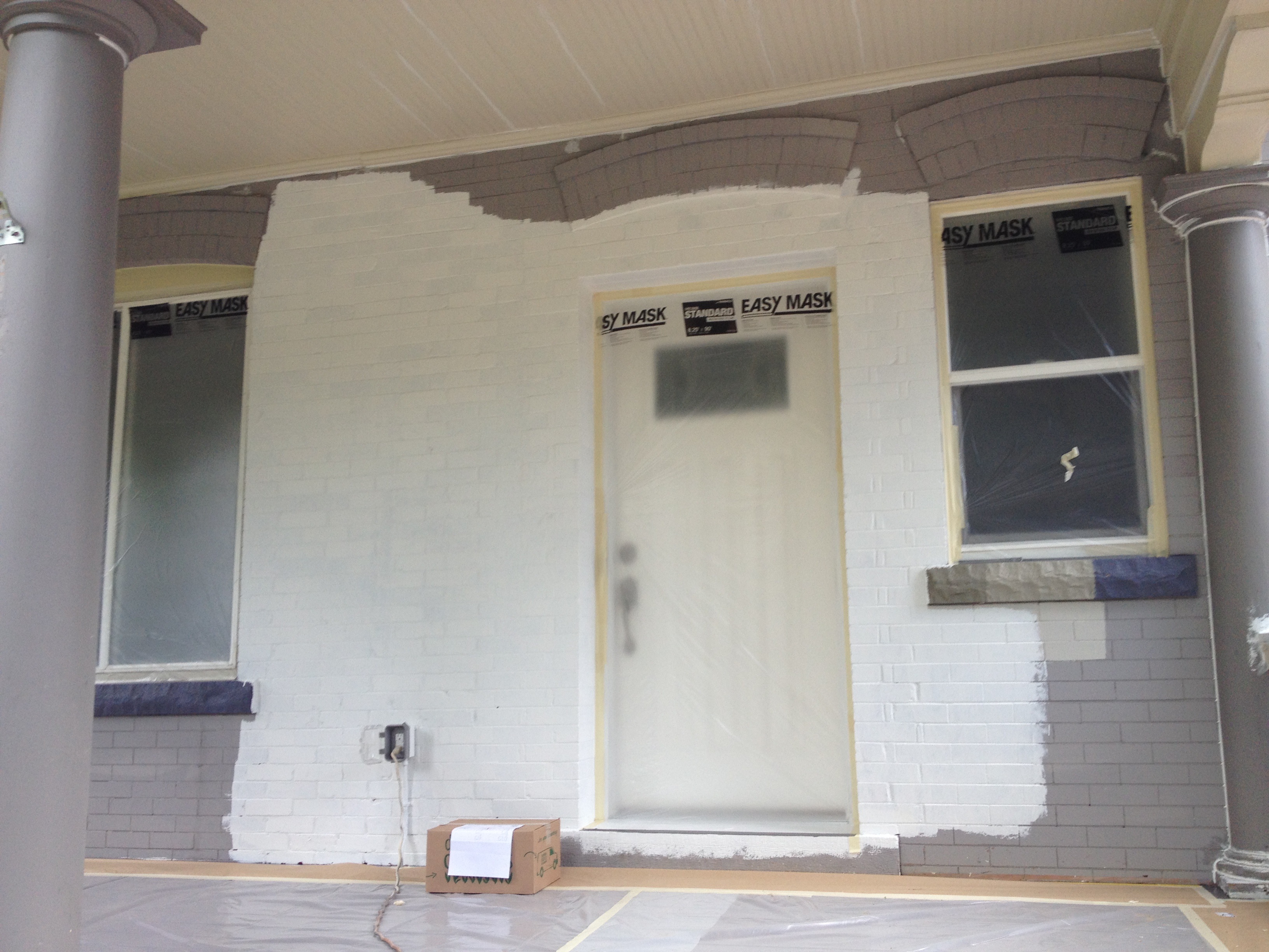 Priming all the raw brick to insure proper adhesion