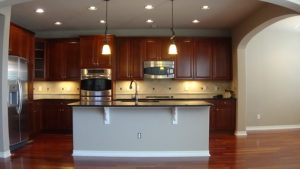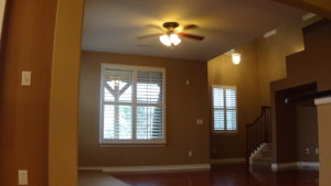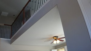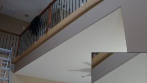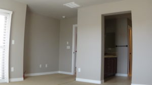 This half-million-dollar paired home was recently purchased by our customer. They wanted to update the color in a monochromatic theme. They went with one of the most popular colors for 2018 – gray. Sherwin Williams Anew Gray to be specific. The customer wanted a no-shine finish that was washable as well – we recommended Benjamin Moore’s premium Regal series in a matte finish. To begin with, we took the base color and cut the pigment formula in half for the ceiling color; then used a full-formula mix for the main walls, with a 200% formulation for the accent wall around the fireplace.
