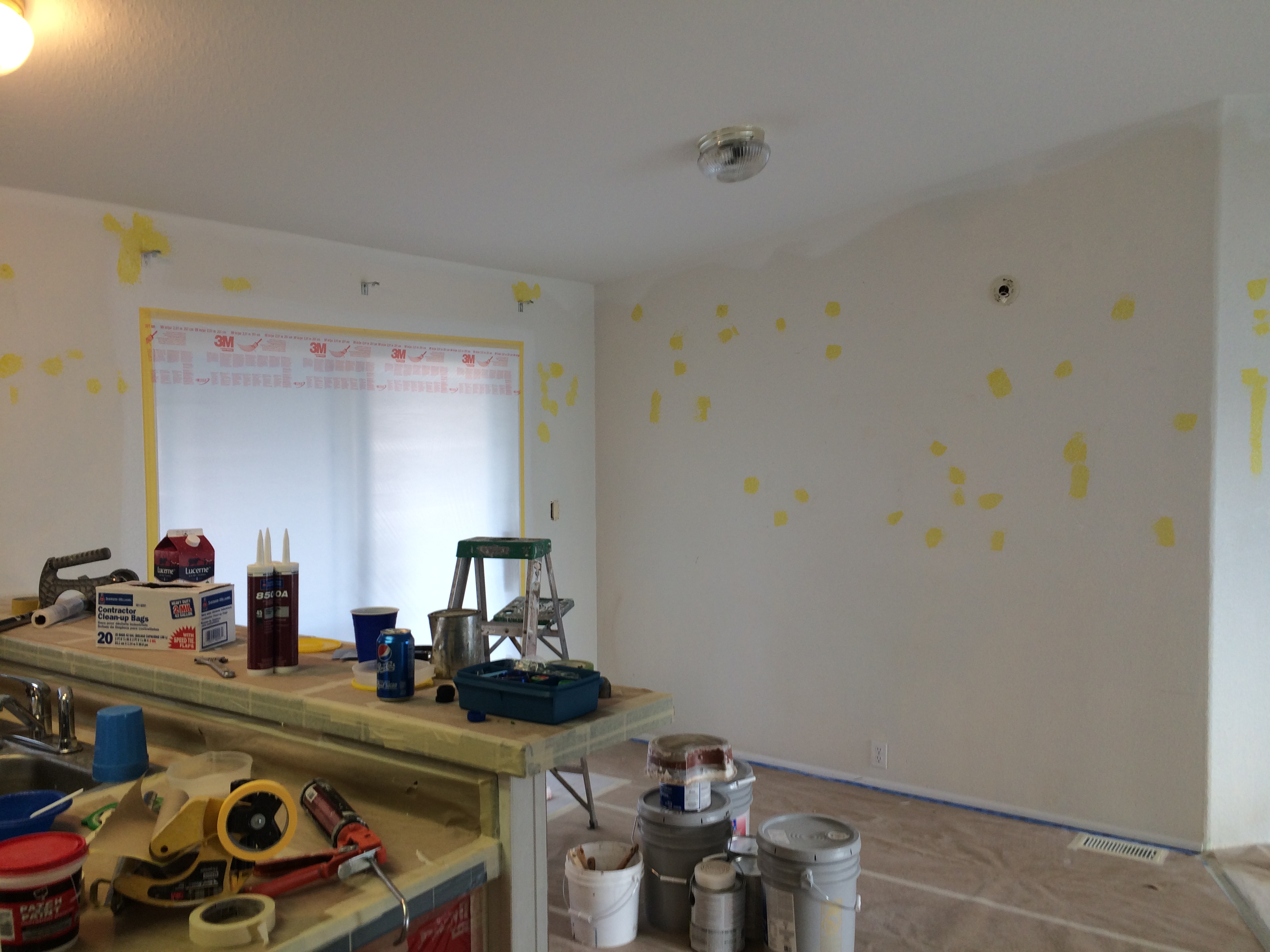It was originally a mobile home that was mounted on a foundation; and it had paneled walls reminiscent of mobile homes built in the 80’s and 90’s. There was plenty of differed maintenance and LOTS of nail/pin holes – over 350 of them, actually.