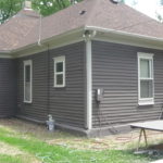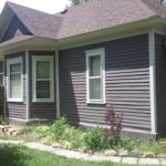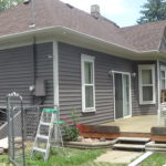 Because it was so badly neglected, much of the old paint is loose and hanging from the house or falling away completely. We’ll be thoroughly scraping the entire exterior to remove all the old paint before priming and painting. Because of the severe paint chipping, we’ll be using a flat finish and darker color over the body to ‘even’ the texture and a low-sheen for the trim.