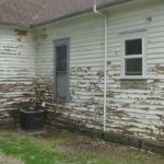 When it was retrofitted, the dryer vent was routed to come out in this corner – the darkest part of the entrie exterior. All thehot moisture from the dryer over the years has loosened a LOT of the paint.