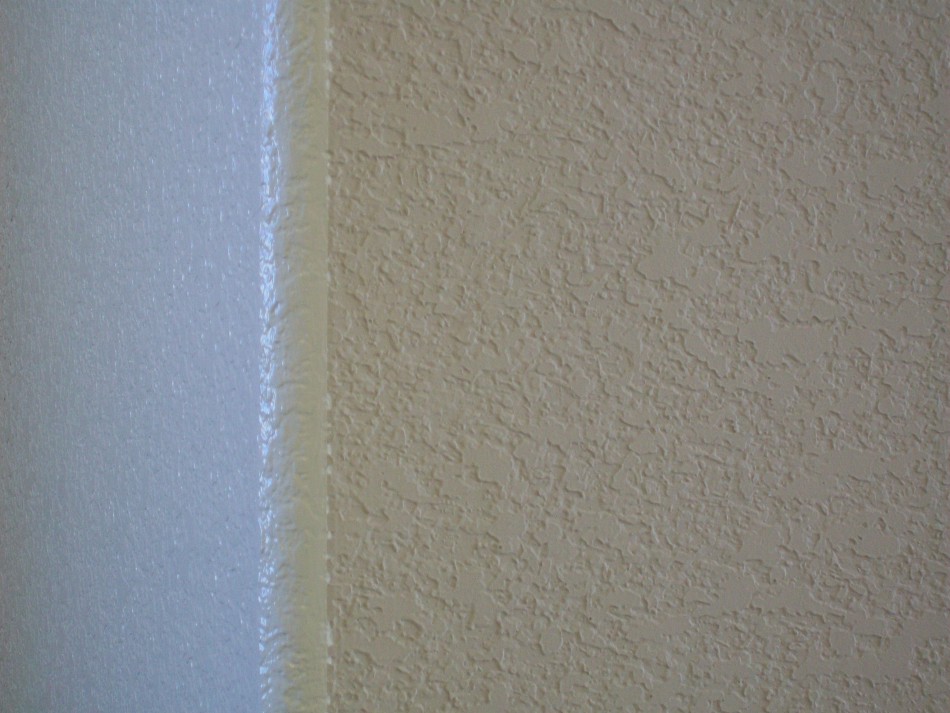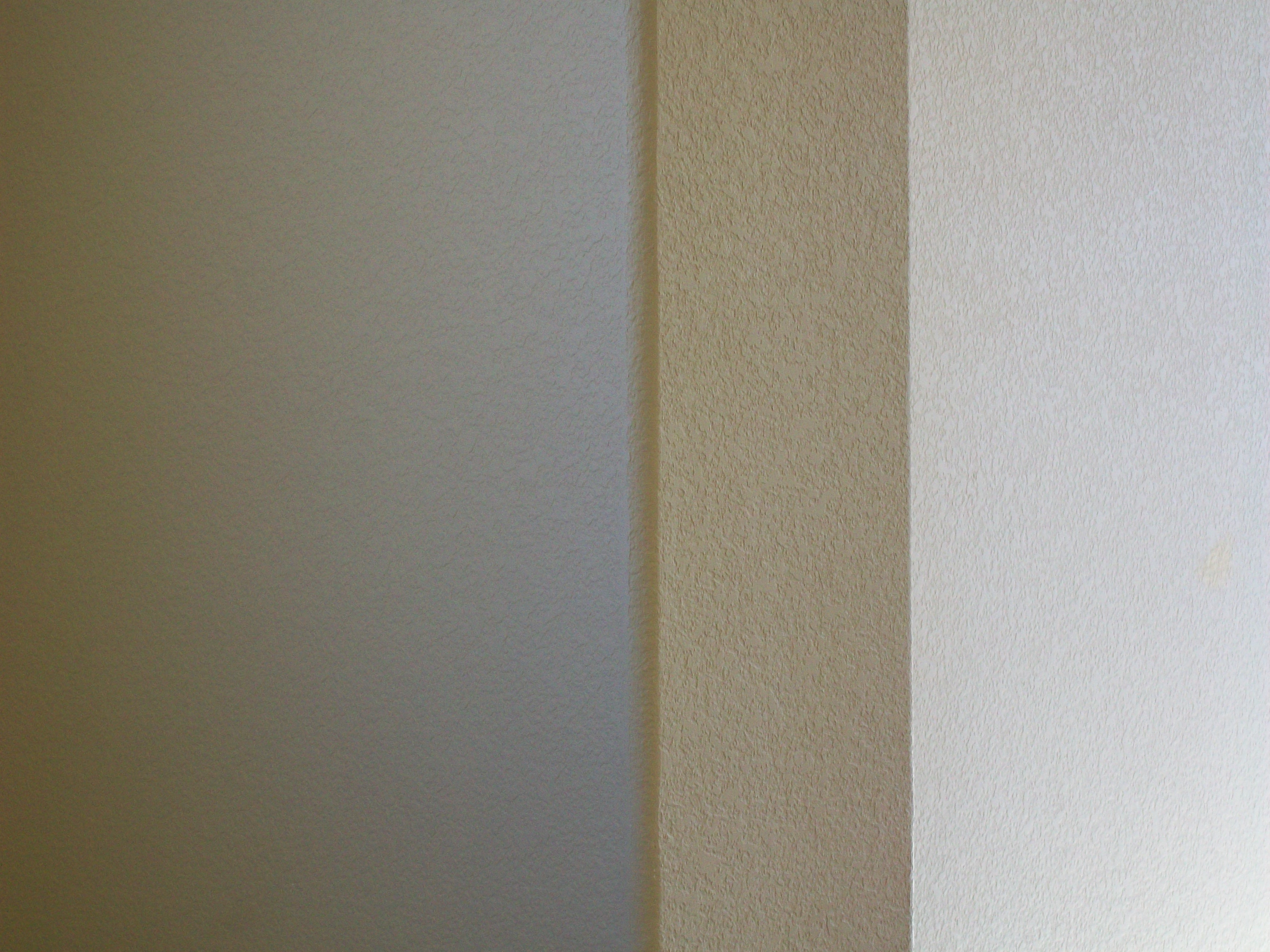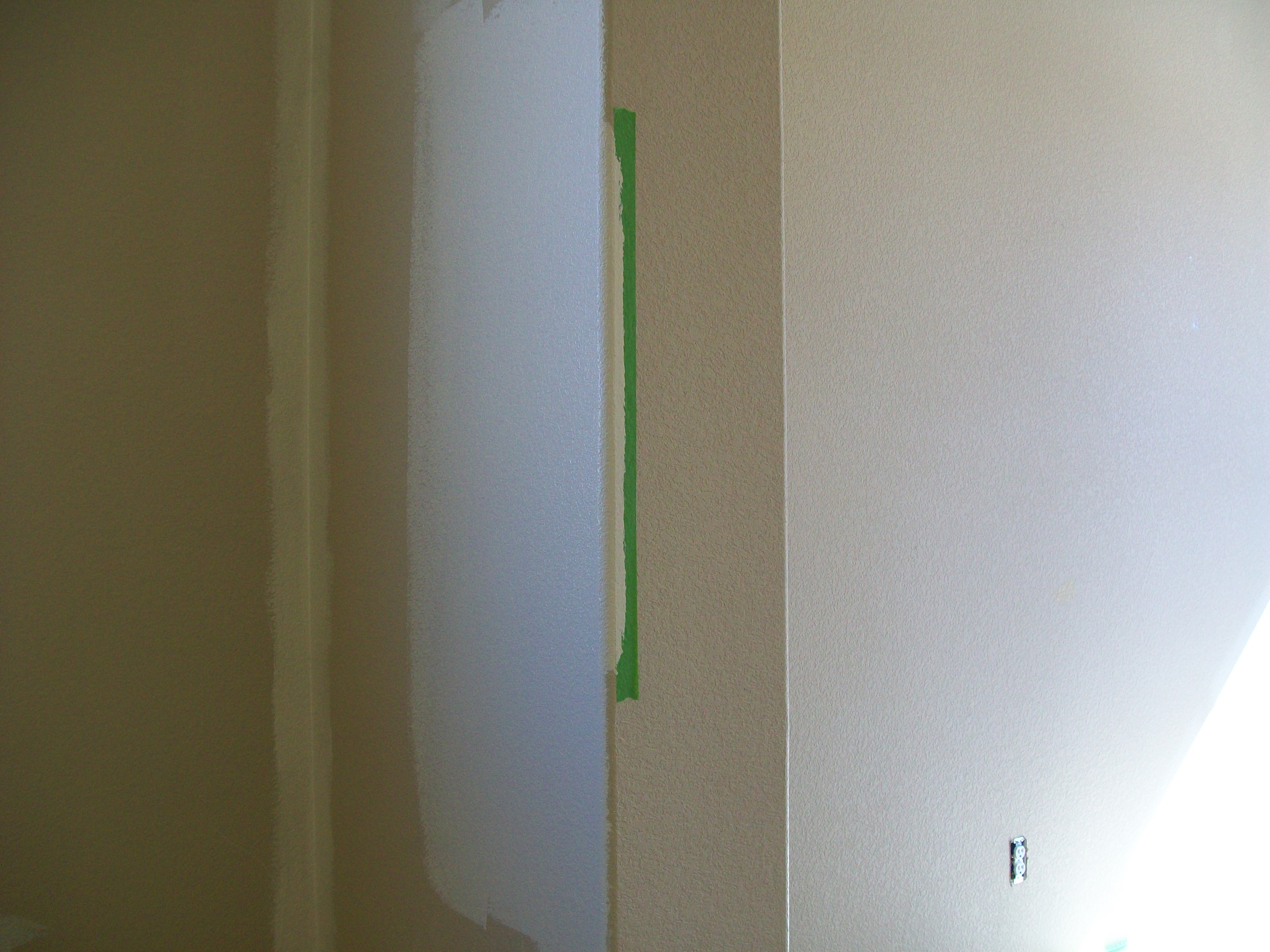 (Please keep in mind that, since these walls were actually going the same color, we were unable to caulk the edge of the tape due to the edge it would leave under the paint.)
