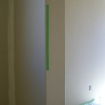 Over the last couple decades bull-nose, or rounded corners have become increasingly popular. They don’t seem to get broken as often and they soften the transition between areas. The challenge becomes when you want to change the color on some areas and not others. How do you create the clean, crisp corner on something without a clean, crisp edge to follow? The key is using the light to create the ‘line’ you need to follow. For our demonstration we’ll be using FrogTape brand adhesive – it gives a much cleaner edge than traditional blue tape.